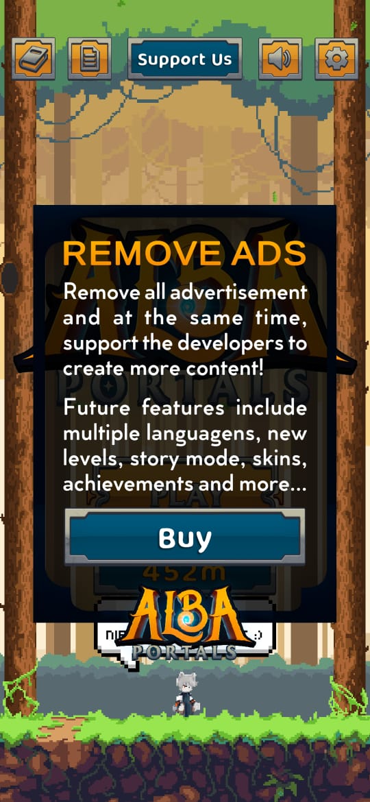Alba Portals was an Endless Scroller game for mobile devices that featured a charismatic character who wanted to return to his home, but to do so he would need to go through several dimensions with different obstacles and enemies. The idea was that the game would be updated gradually, adding new worlds, difficulties, and goals.